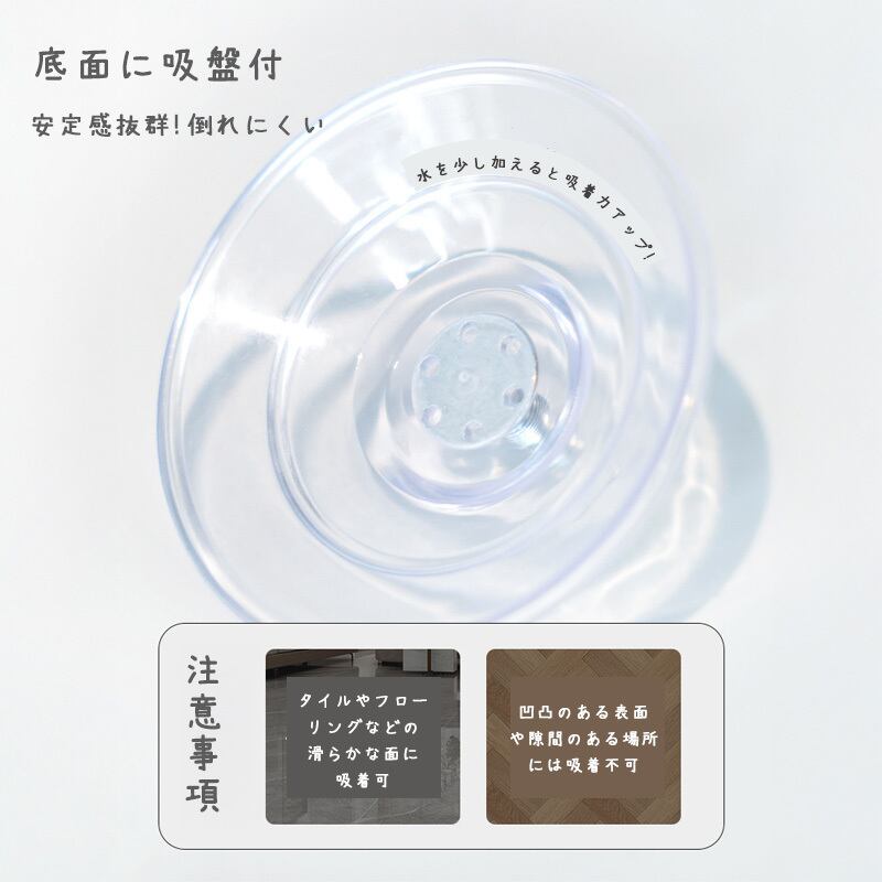 - 底部は吸盤で固定するため、安定感があり、安心して使用できます。