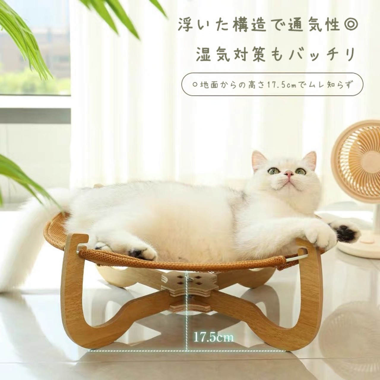 通気性のよいメッシュ生地を使用し、床から浮いた構造で風通し抜群!蒸れにくく、暑い季節でも猫ちゃんが快適に過ごせます。