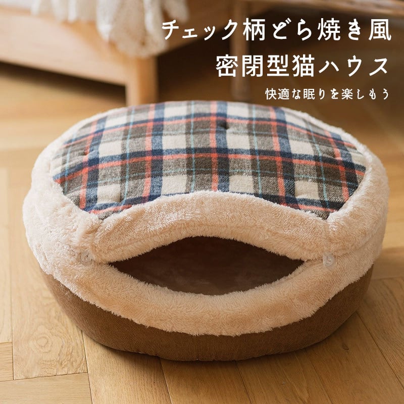 可愛いもこもこどら焼き型猫ハウス