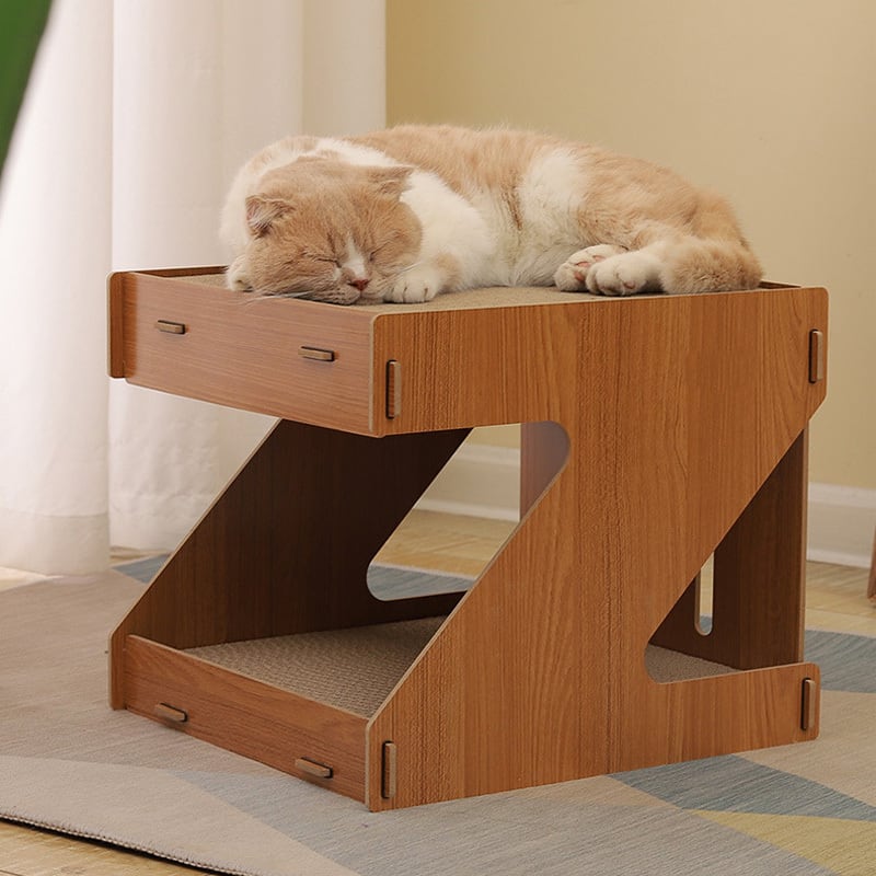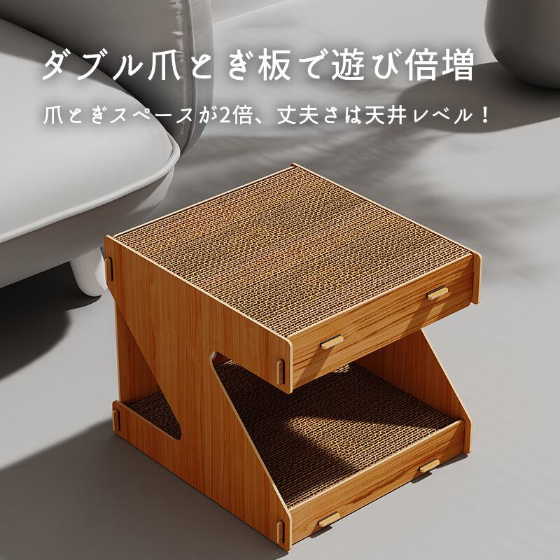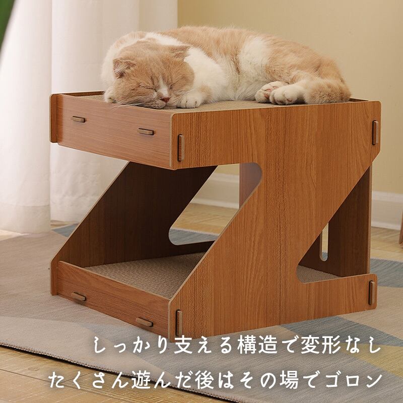 おしゃれな木目調!簡単二段式爪研ぎタワー