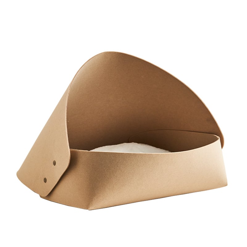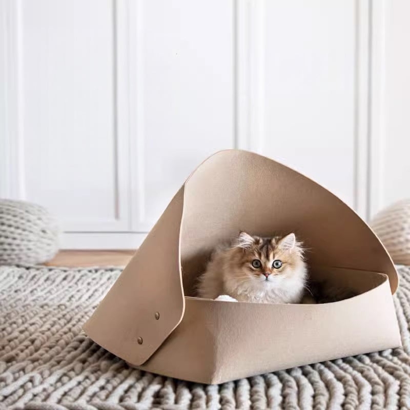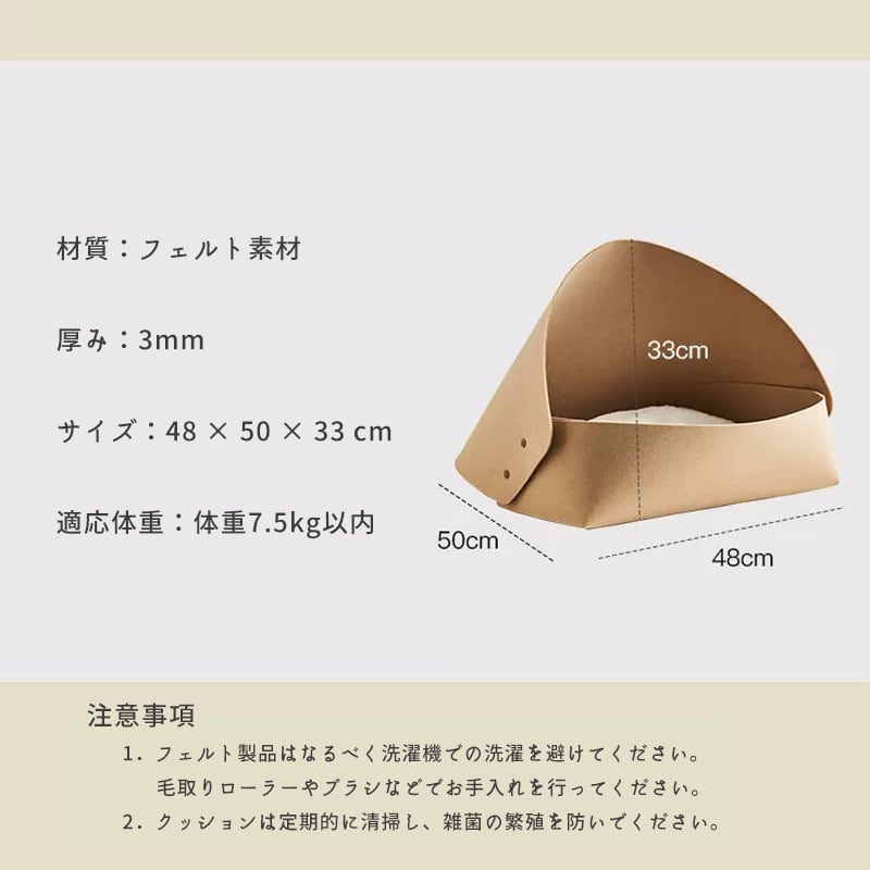 猫ちゃんのプライベートな空間を作りつつ、包まれるような安心感を与えてくれる優しい設計です。