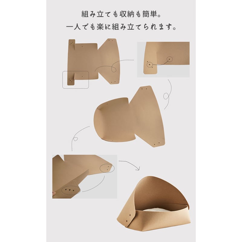 サイドを留めるだけの簡単組み立てで、使わない時はコンパクトに収納可能。