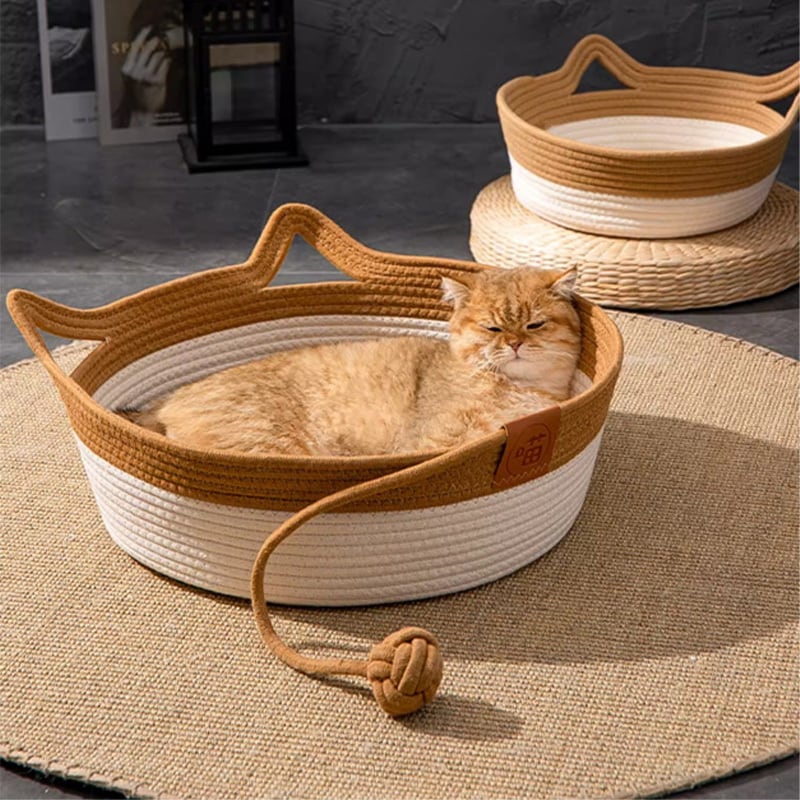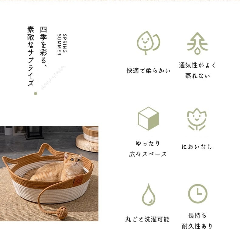 かわいらしい猫型のデザインで、あなたの猫ちゃんを魅了する「通気性抜群なのにふかふか♪猫型籠ベッド」が登場しました!天然コットン素材を使用したこの籠型ベッドは、通気性が良く夏でも快適にお使いいただけます。