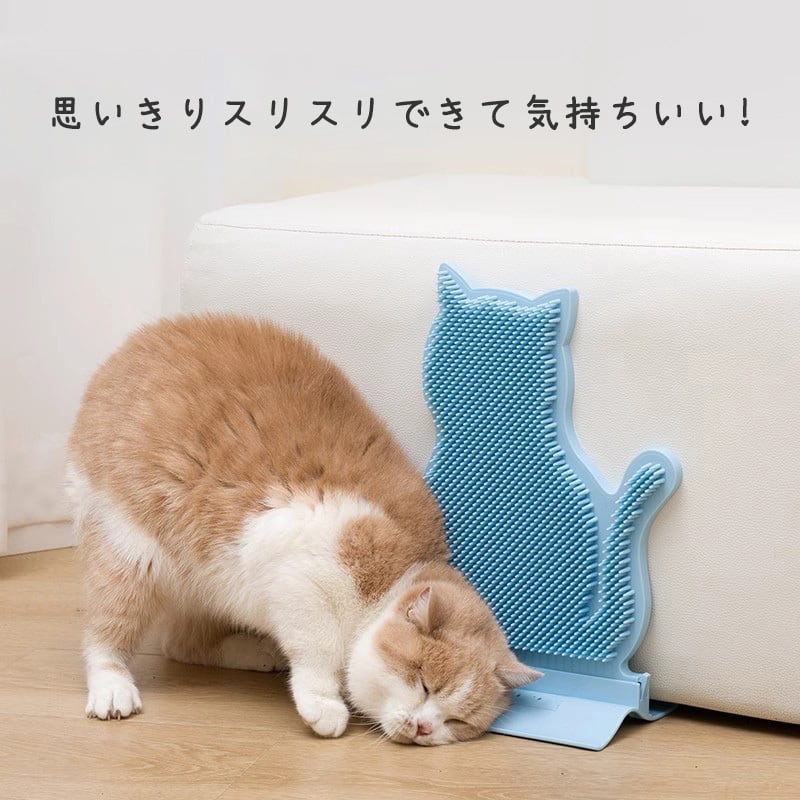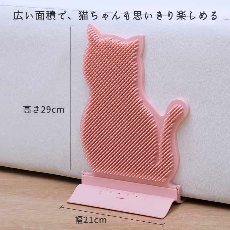 ドアに取り付けるタイプで、猫ちゃんが自分で体をこすりつけて簡単にブラッシング。